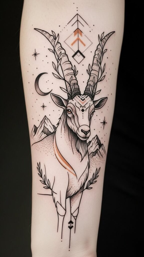 Driven by ambition and a relentless pursuit of success, you resonate with the spirit of Capricorn, the ambitious goat that symbolizes determination and resilience. Your Capricorn traits shine through in every goal you chase, and a striking Capricorn tattoo can embody your Earth element energy.