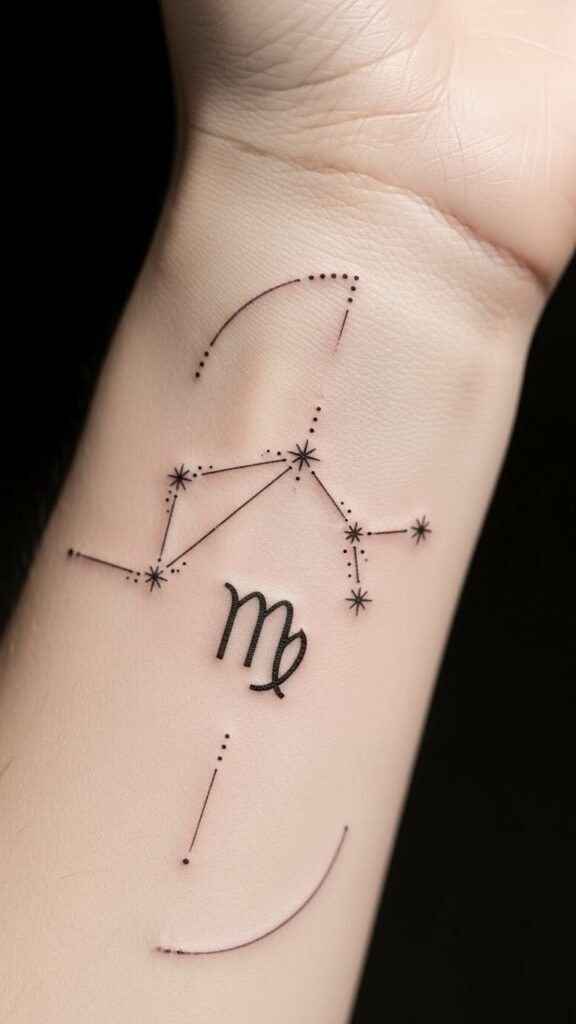 While Leo tattoos exude strength and charisma, Virgo tattoos celebrate the beauty of precision and meticulousness. A minimalist Virgo tattoo often reflects your appreciation for simplicity, featuring the elegant Virgo constellation.