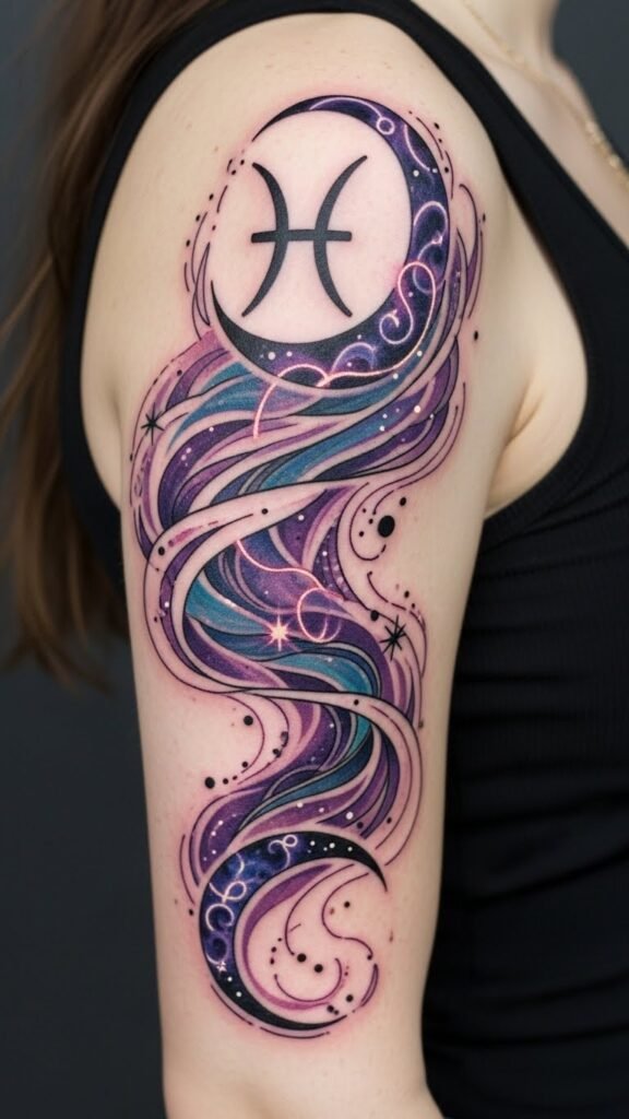 As you explore Pisces tattoos, you’ll find designs that beautifully reflect the dreamy and intuitive nature of this water sign.