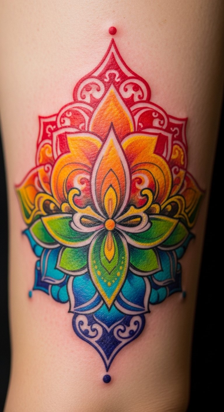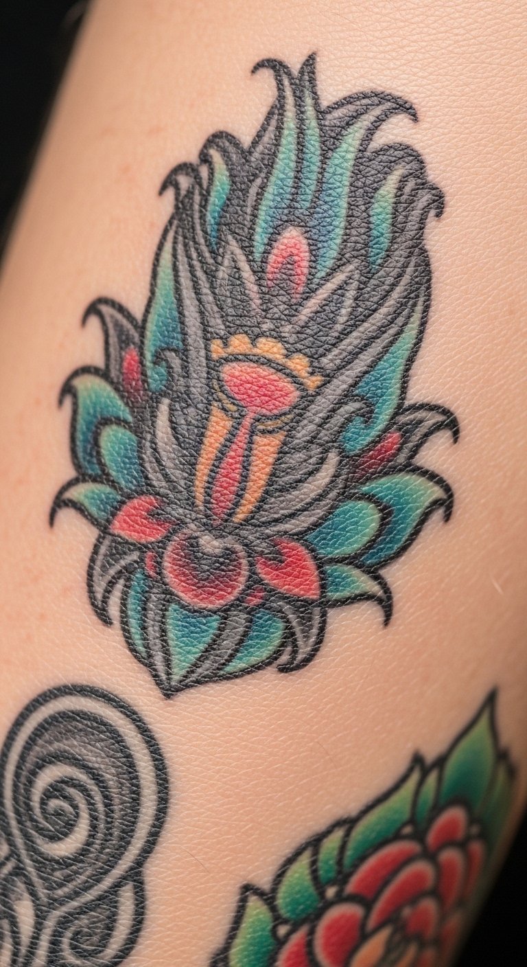 This tattoo concept uses the original guidance as a blueprint: a bold, high-contrast piece that pairs complementary colors from the color wheel—think teal and rich coral—applied with layered pigments to create depth and luminous saturation. Placement is chosen for maximum visual impact, such as the upper arm, shoulder blade, or calf, where the contours of the body accentuate the layered tones; the design balances striking visual contrast with personal symbolism, allowing the hues to express mood and identity while mindful pigment selection ensures skin compatibility and long-lasting vibrancy.
