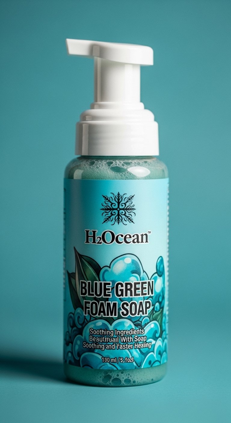 A design centered on a stylized, translucent soap bar cradled by gentle hands that morph into flowing water and lather, with subtle shield motifs and tiny antiseptic droplets orbiting the bar; integrate soft blues, greens, and warm skin tones with fine linework and a watercolor wash for a soothing, hygienic aesthetic. Symbolically the hands and water represent care and cleansing, the shield motifs denote protection and healing, and the antiseptic droplets evoke strength against infection—emotionally calming and reassuring. Ideal placement: inner forearm or sternum for visibility during aftercare and as a personal reminder of self-care and preservation of one’s art.