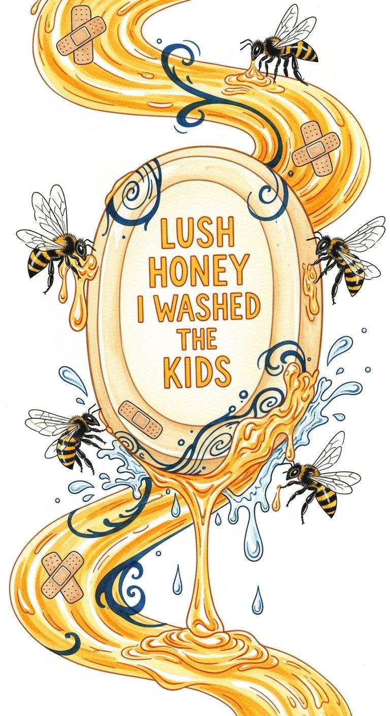 The design blends cleansing and nourishment motifs to represent care and recovery: the apothecary jar symbolizes gentle daily rituals and balanced pH, honeycomb fragments evoke the nourishing legacy of “Lush Honey I Washed the Kids Soap,” and water droplets and wildflowers convey hydration and sensitivity.