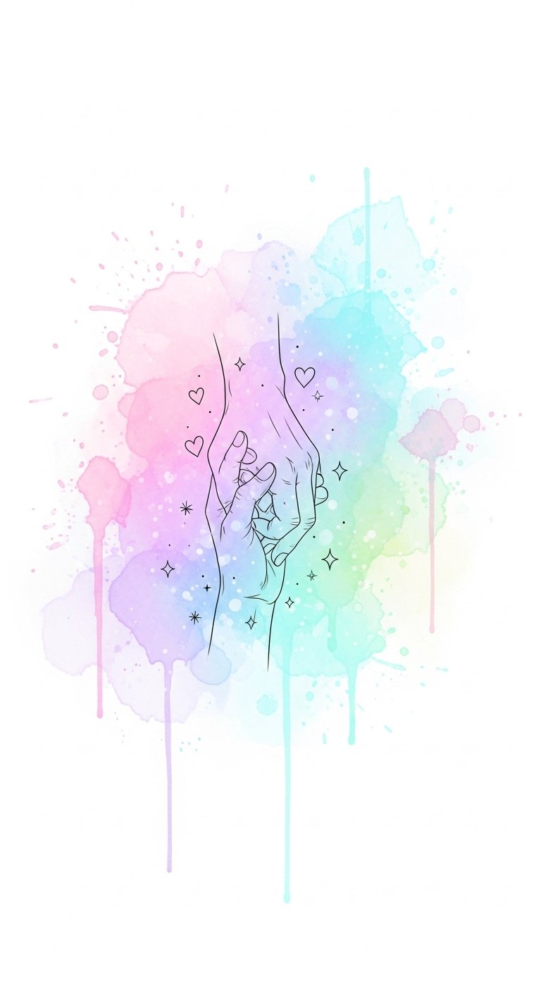 Imagine vibrant watercolor gradients blending seamlessly, creating a dreamy backdrop for your holding hands tattoo. Soft pastel hues whisper of romance and intimacy, allowing your love story to unfold on your skin.