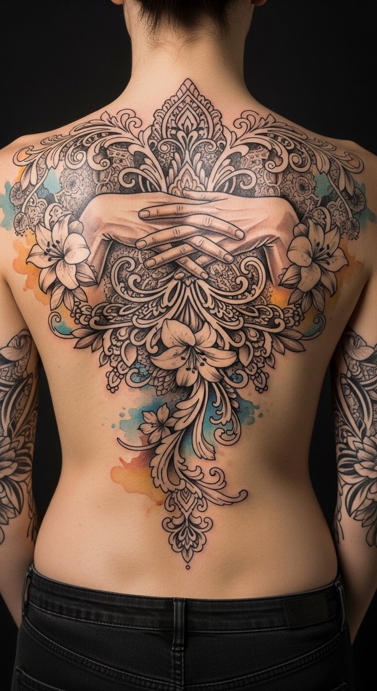 Imagine a beautifully intricate design that flows across your back, showcasing stunning back design aesthetics.