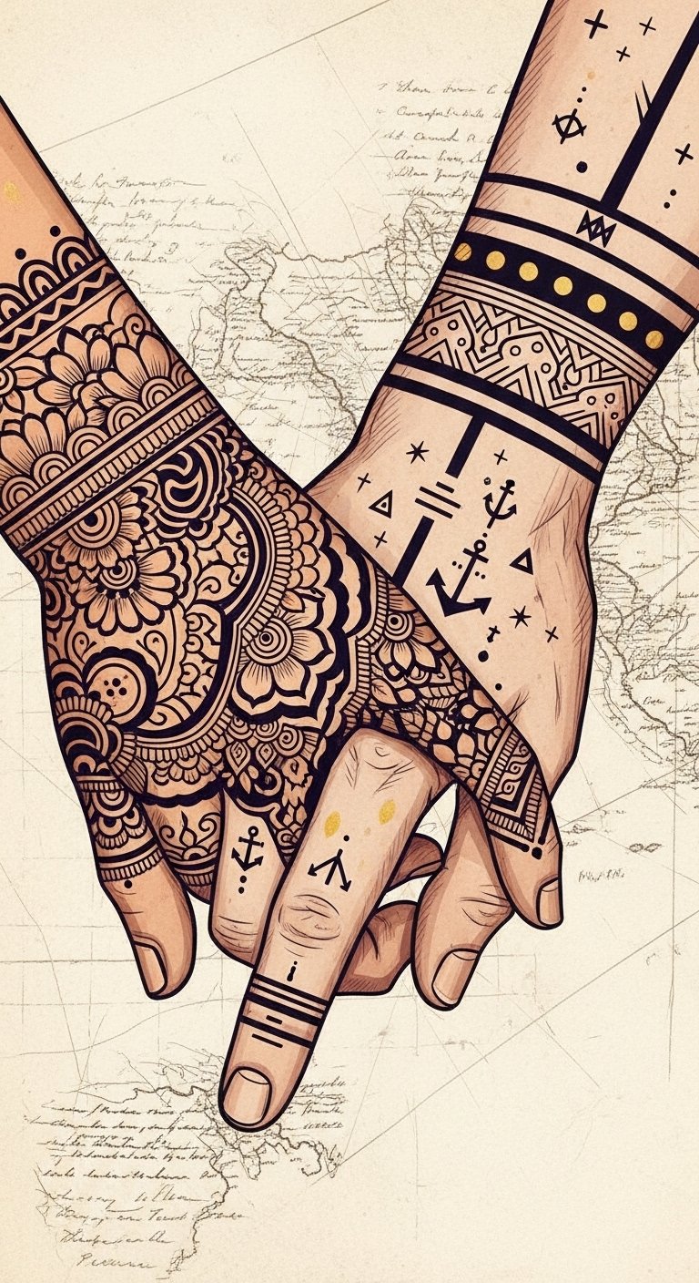 These designs often reflect cultural roots, celebrating shared histories and personal journeys. Each tattoo carries deep tattoo symbolism, connecting you to ancient traditions while expressing your unique love.