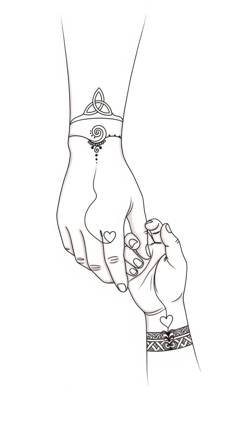 When you think about love, what symbolizes that connection better than holding hands? These 25 unforgettable holding hands tattoo designs capture the essence of shared moments and deep bonds. From intricate details to minimalist styles, each tattoo tells a story of unity and support. Imagine the personal touches you could add, transforming a simple design into a lasting keepsake. What might your perfect representation of love look like? This design emphasizes intimacy and equality through subtle size difference and matching heart negative space, evoking warmth, protection, and commitment; ideal on the inner wrist or along the forearm where it can be seen in quiet moments and felt as a personal reminder of connection.