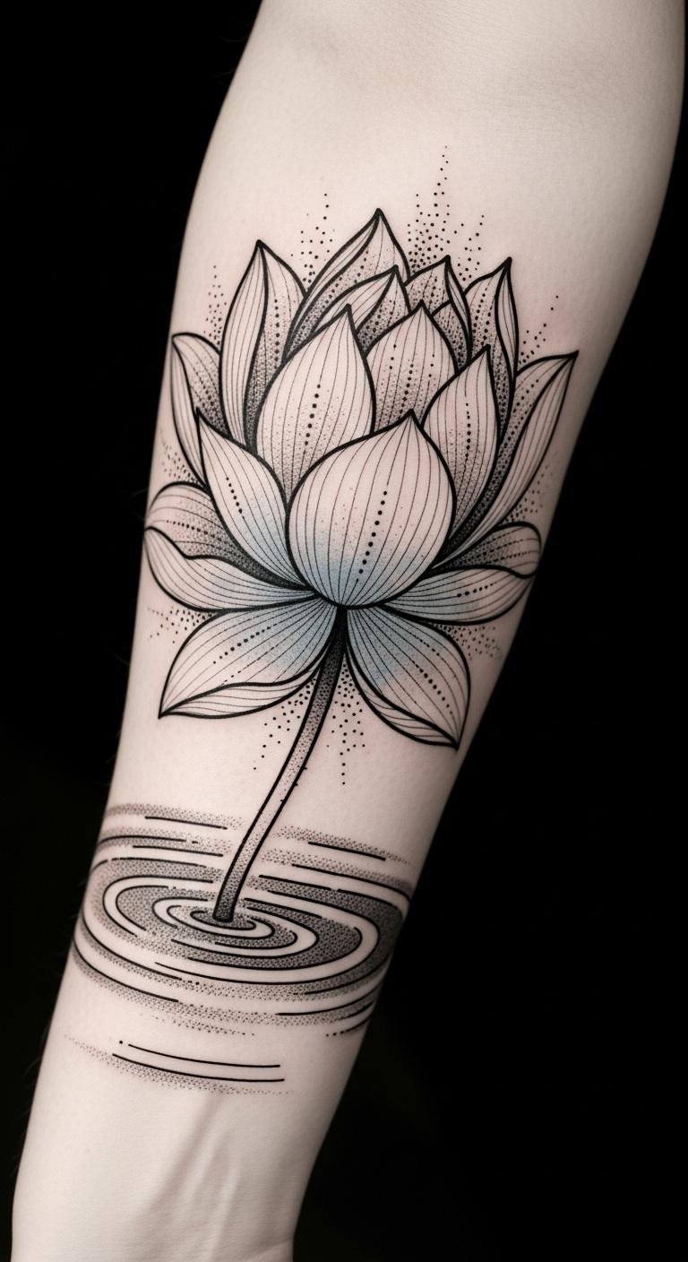 Place along the forearm or ribcage to follow natural lines and allow movement to animate the petals, evoking calm, renewal, and a gentle confident presence.