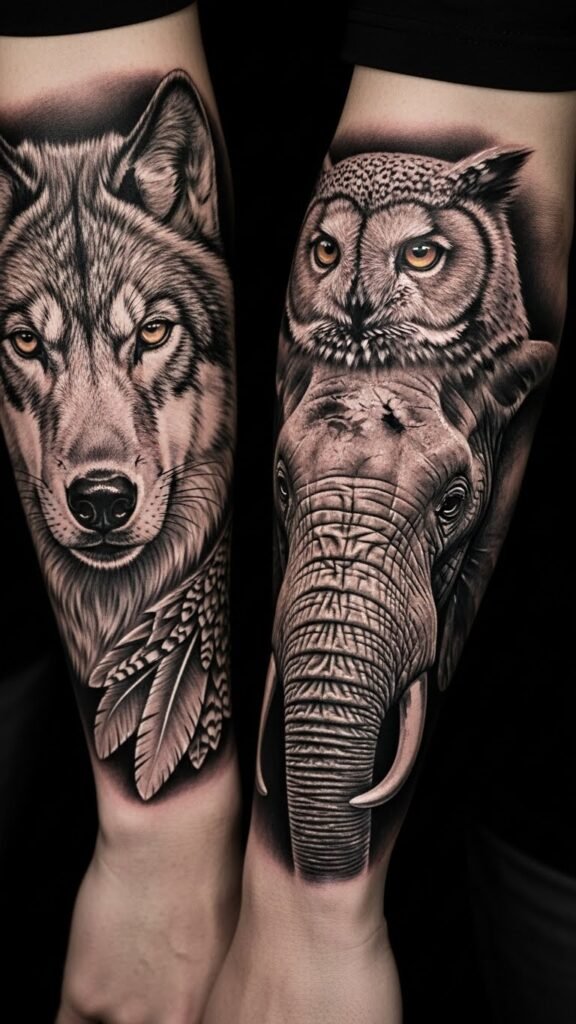Ideal placements are forearm for visibility and interaction, chest for personal significance and larger scale, or shoulder blade for a balance of concealment and display; placement influences how the portrait reads with movement and body contours, reinforcing the wearer’s connection to the animal’s symbolism.