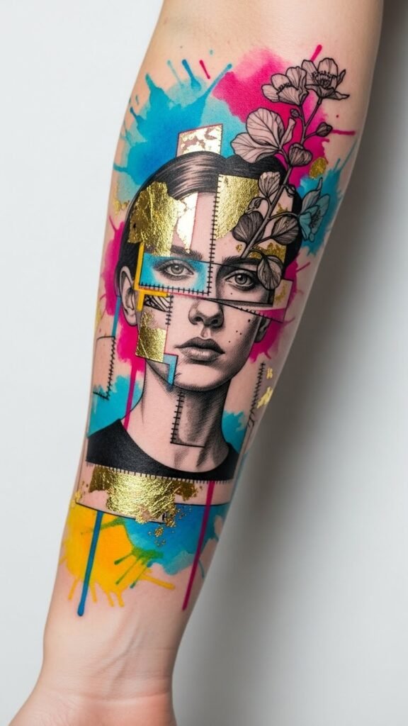 Exploring the depths of artistic expression, mixed-media tattoo styles blend traditional ink with unconventional elements, creating a striking visual narrative on your skin.