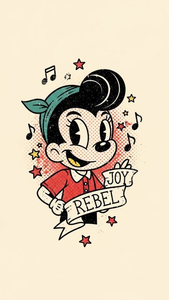 The design symbolizes a bridge between personal memory and bold self-expression, evoking warmth, cheeky defiance, and lighthearted confidence; ideal placements include the forearm, calf, or shoulder blade where animated movement and interaction with clothing enhance the nostalgic charm.