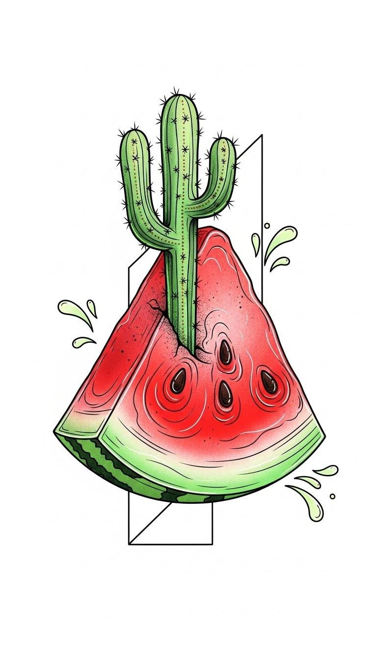 This fusion symbolizes resilience and joy, blending the sweetness of watermelon symbolism with the sturdy, adaptive nature of cactus designs.