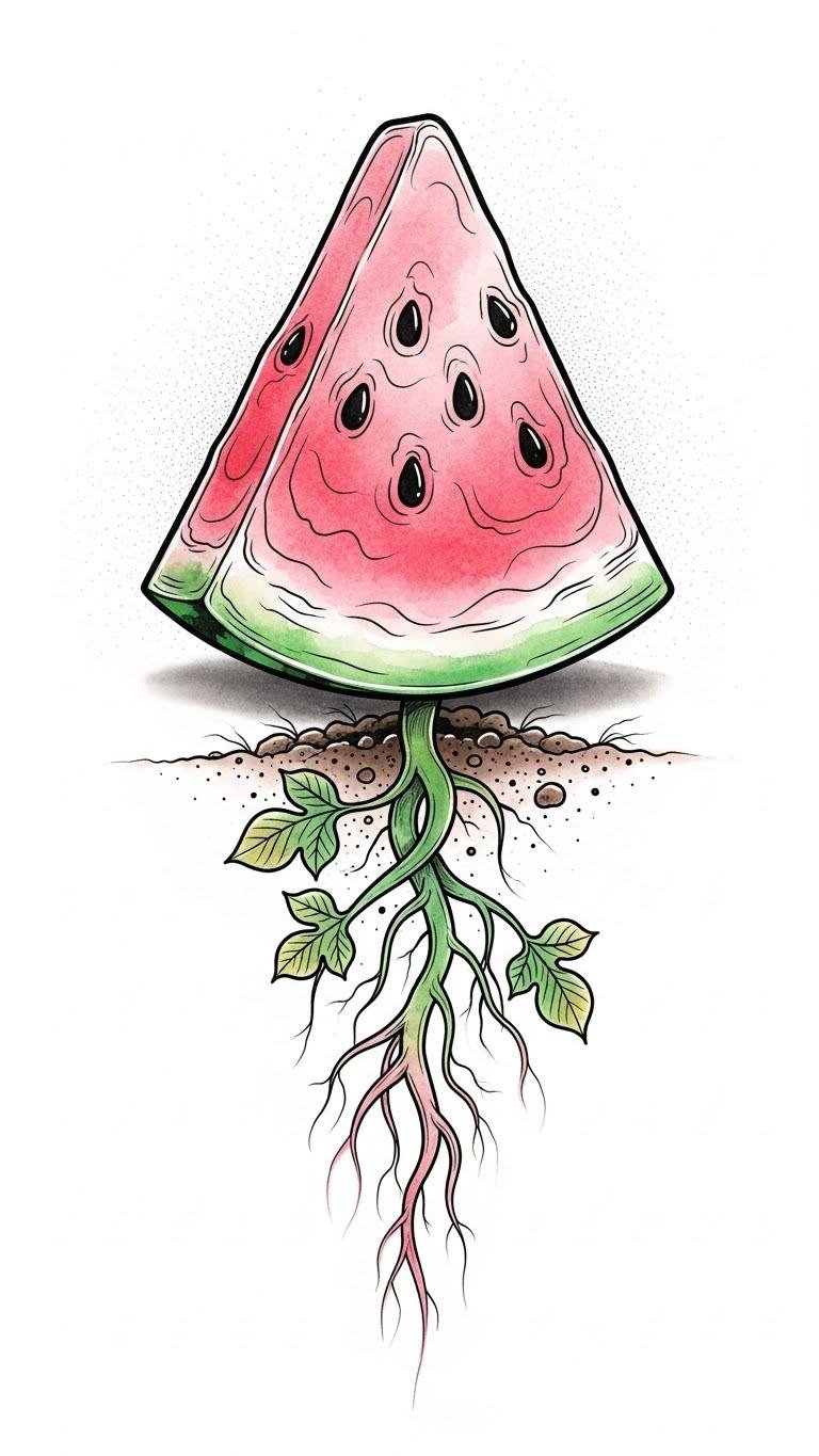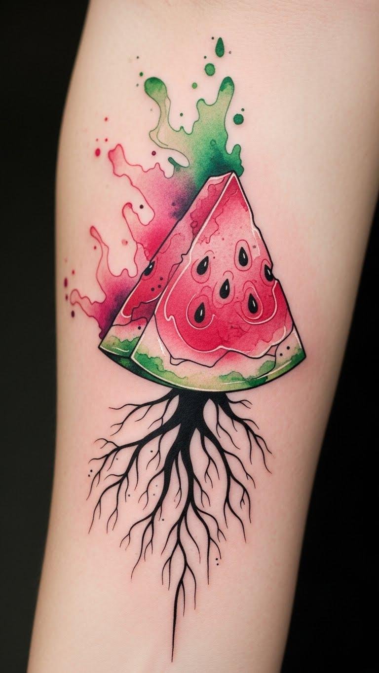 While you might think of watermelon tattoos as purely cheerful and lighthearted, incorporating roots into the design adds a profound layer of meaning.