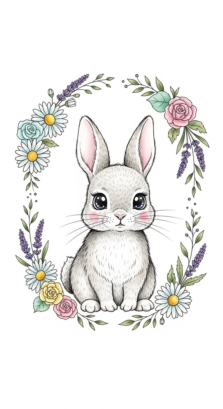This design intertwines floral symbolism, representing love and growth, with rabbit mythology, symbolizing fertility and rebirth. As you embrace this whimsical art, you’ll celebrate the harmony of life and the enchanting spirit of the natural world, inviting joy and freedom.
