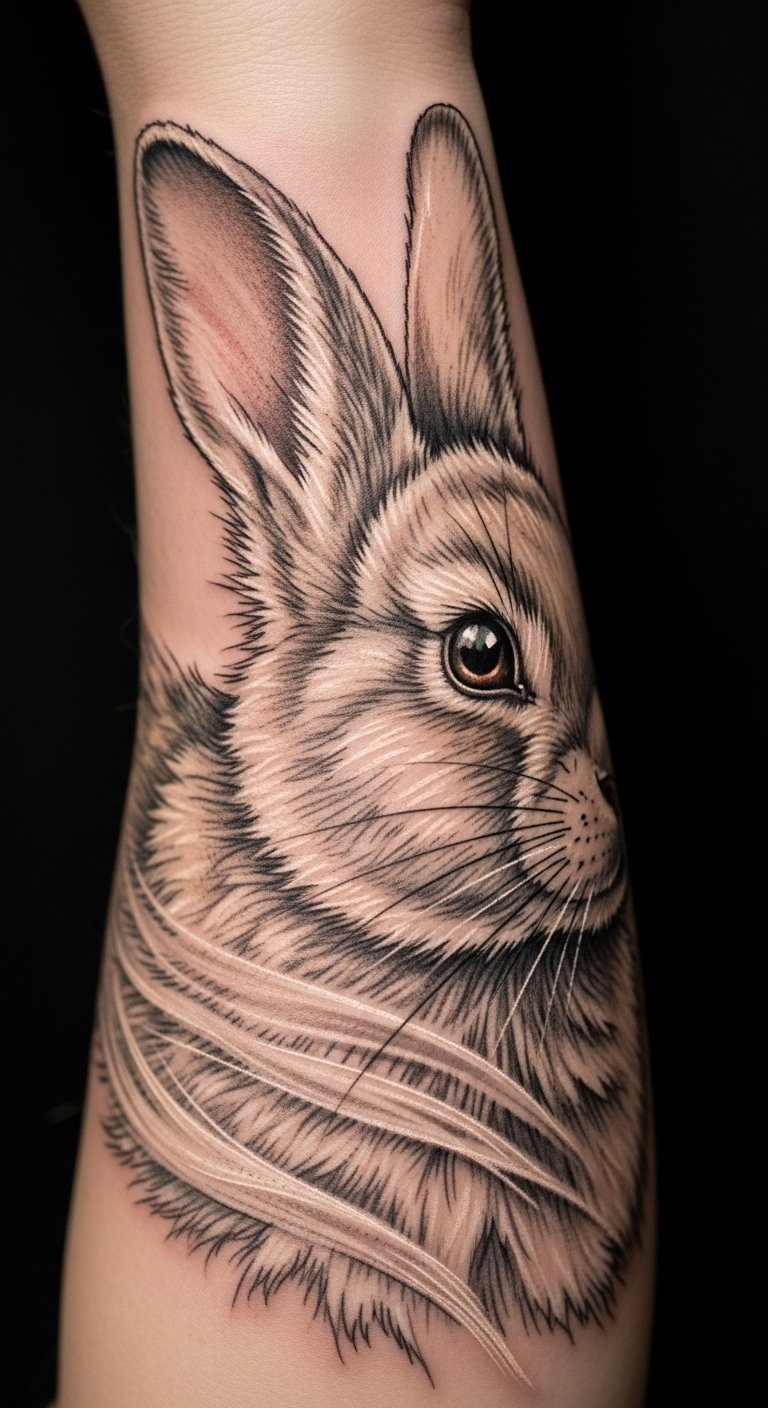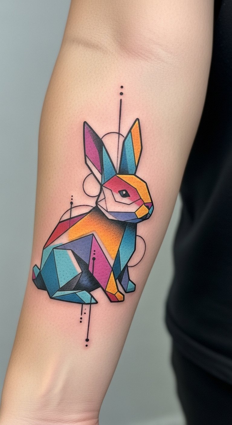 Placement on the forearm turns the tattoo into a visible personal statement and conversation starter, while the ankle offers a subtler, intimate expression that peeks through movement. Each location enhances the contrast between bold geometry and the soft symbolism of the bunny.