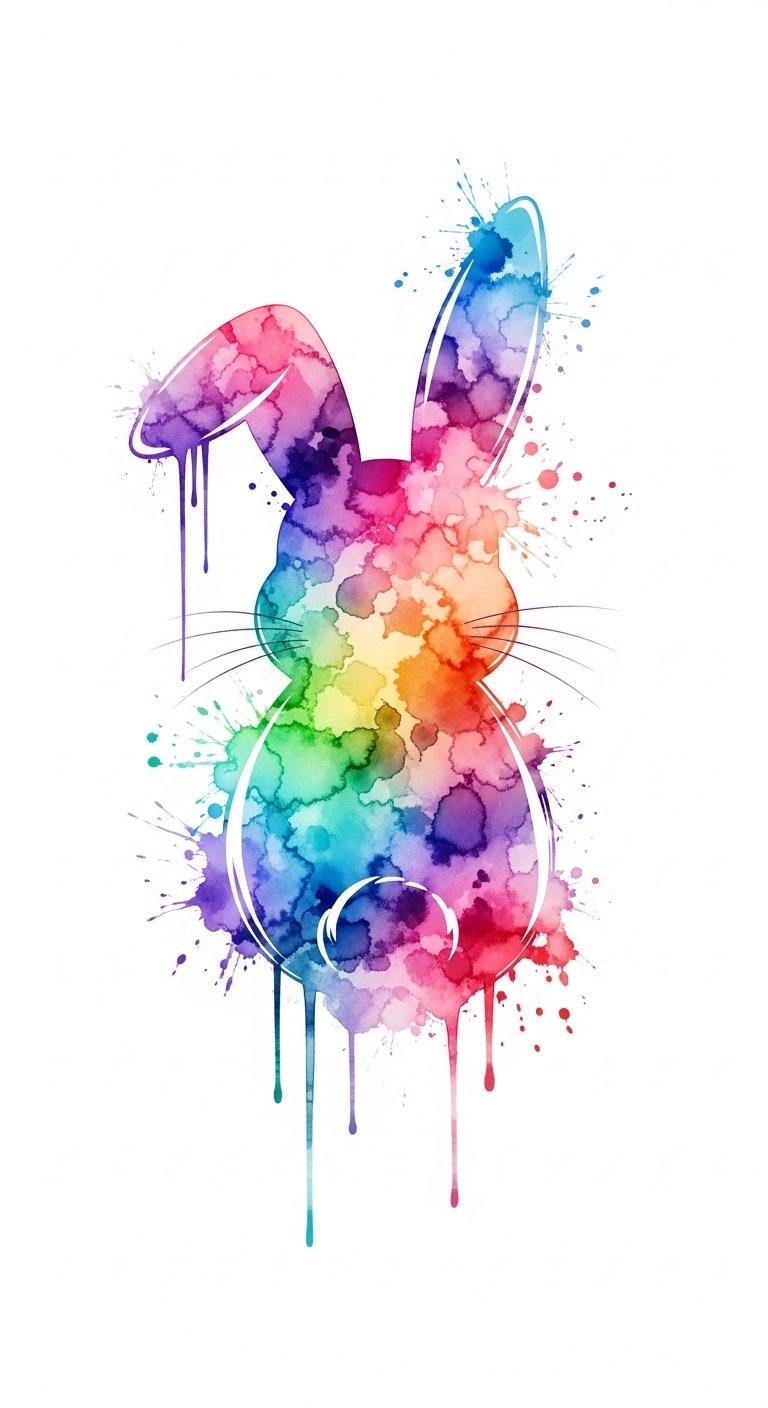 This design symbolizes playfulness, renewal, and gentle curiosity—the bunny rendered in flowing washes conveys movement and lightness while the colorful blends express emotional freedom and creativity.