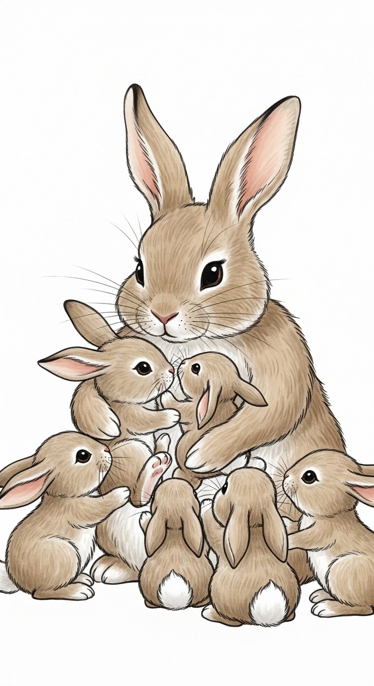 Imagine a sweet bunny cradling a heart, embodying bunny love. Heart symbols intertwine with delicate vines, creating a whimsical design that celebrates connection and warmth.