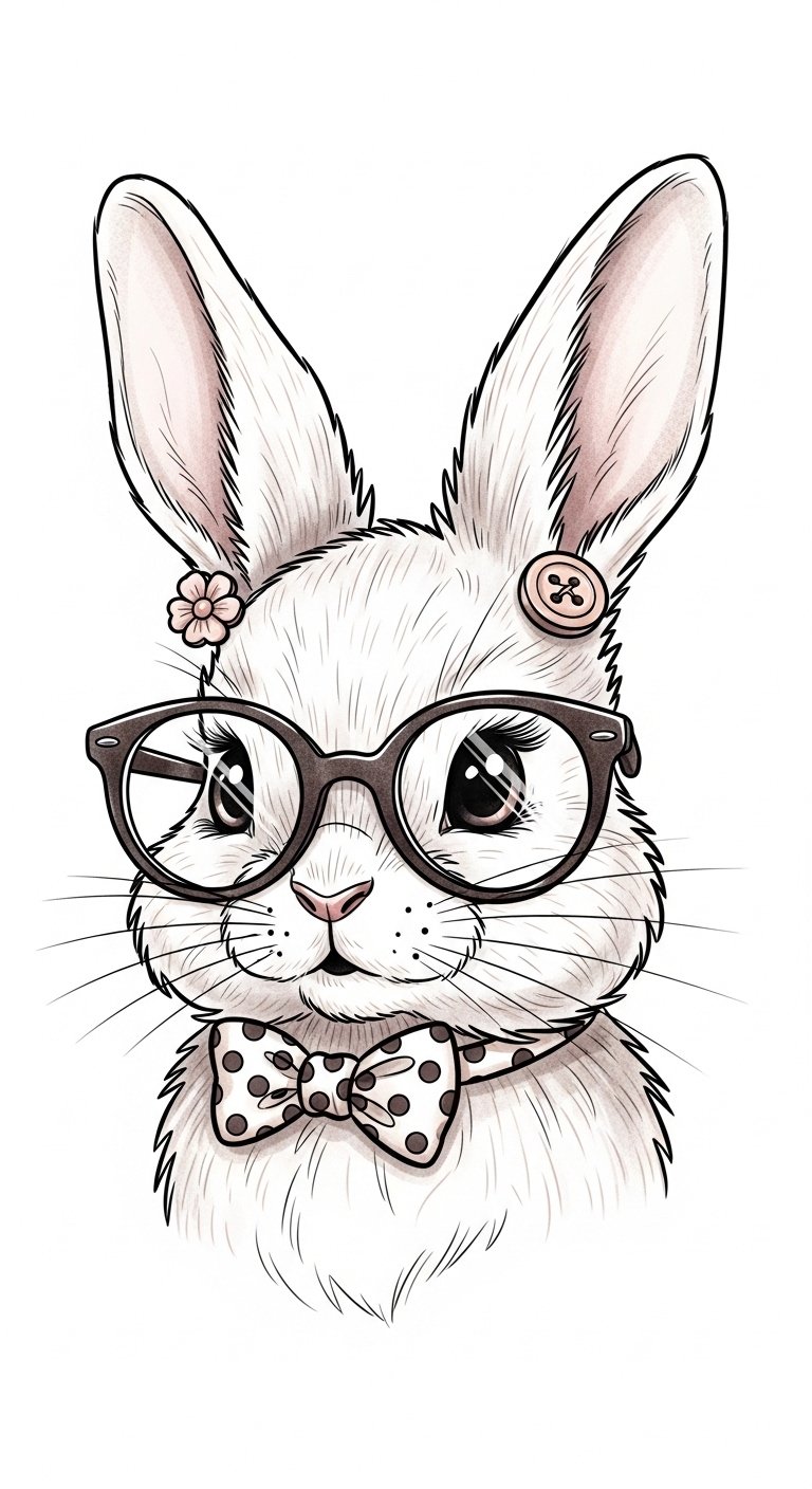 This tattoo concept blends lighthearted whimsy and personal expression: the bespectacled bunny symbolizes curiosity, intelligence, and a cheerful outlook, while the trendy glasses and accessories signal individuality and playful confidence. Emotionally it evokes warmth and uplift—an everyday reminder to approach life with humor and style. Ideal placements include the inner forearm, shoulder blade, or ankle for visibility and intimacy; scale can vary from small and delicate to medium with color accents to match your wardrobe and mood.